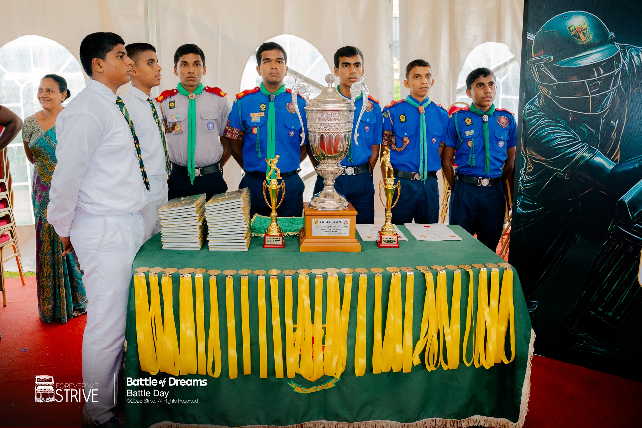 The 1st Inaugural Big Match between St. Aloysius College, Galle and Holy Cross College, Kalutara, aptly named the “Battle of Dreams,” was held on the 30th and 31st of May 2025 at the Galle International Cricket Stadium.